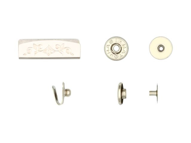 一般的な金属釦です。 小物入れ・サイフ・薄手のバッグなどのヘリの部分に使われます。