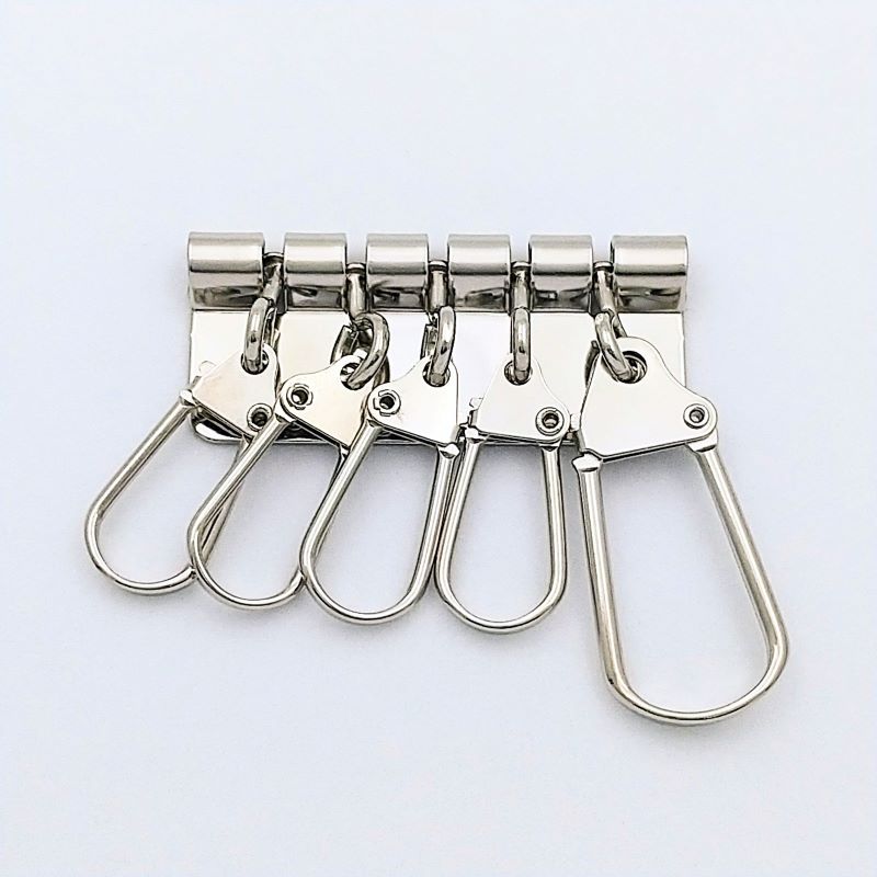 キーケースに使われる金具です。ナスカンが4個付と5個付の2規格になります。