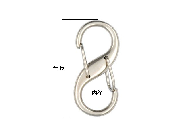 用途 鞄・ポーチ・リュックサック・キーホルダーなどの接続部分に使われます。 規格・素材 ● S字アミナス9mm 全長 45mm・内径 9mm ● S字アミナス12mm 全長 45mm・内径 12mm 亜鉛ダイキャスト その他 メッキ / NI・AG・PG 対応